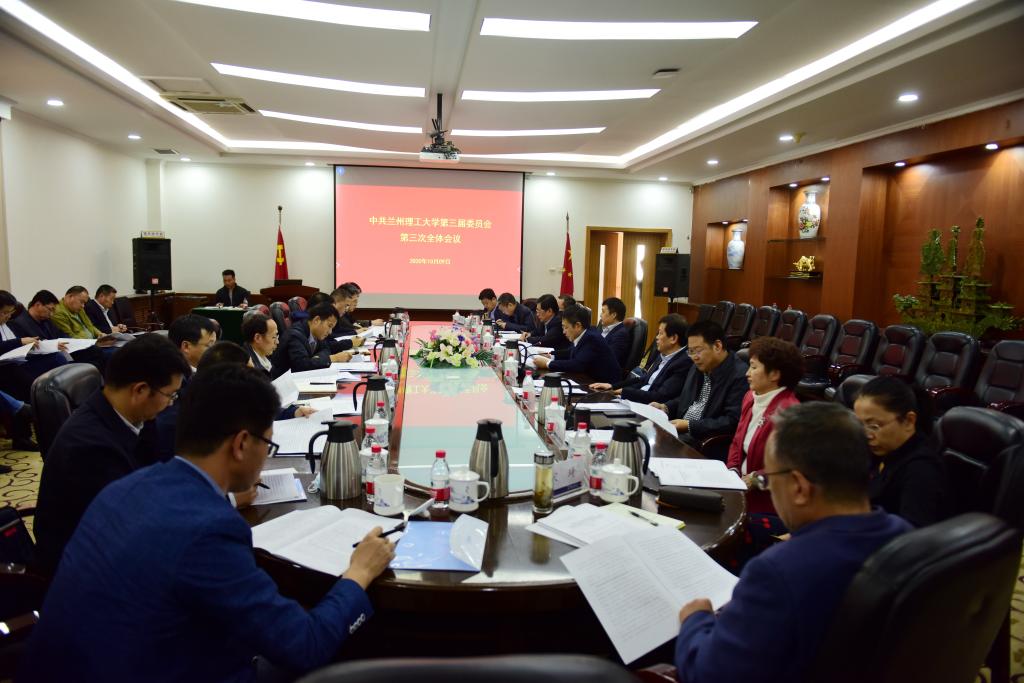 10月9日,中共蘭州理工大學第三屆委員會第三次全體會議在逸夫科技館召開。會議聽取并審議了黨委常委會工作報告、校長工作報告、紀委工作報告,聽取“十三五”規劃執行情況匯報。全體黨委委員參加會議,黨外校領導、紀委委員列席會議。會議由學校黨委書記夏天東主持。