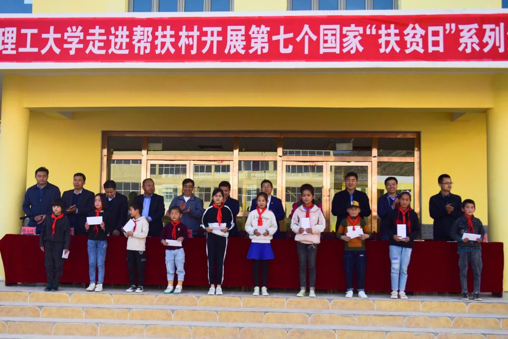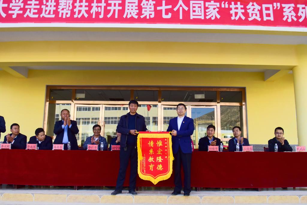 儀式上,學(xué)校對幫扶的6個村9所學(xué)校,2019—2020年表現(xiàn)優(yōu)異的609名中小學(xué)生進(jìn)行了表彰獎勵,其中包括463名小學(xué)生、144名中學(xué)生和2名考取大學(xué)的學(xué)生,發(fā)放金額26.64萬元。果園鎮(zhèn)中學(xué)校長和受資助學(xué)生代表分別發(fā)言,感謝蘭州理工大學(xué)對當(dāng)?shù)亟逃龀龅闹С謳椭閷W(xué)校贈送“情系教育、惟宏隆德”錦旗。