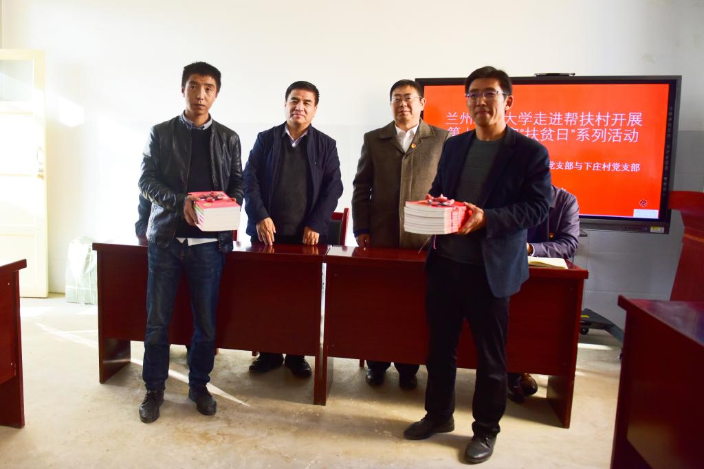 儀式結(jié)束后,與會領(lǐng)導(dǎo)前往五家鄉(xiāng)小學(xué),參觀考察了新建成的幼兒園,并開展了蘭州理工大學(xué)組織部黨支部結(jié)對幫扶下莊村黨支部主題黨日活動。時寧國、夏天東向五家學(xué)校捐贈圖書,王佰成主持主題黨日活動。時寧國強調(diào),要推動精準(zhǔn)扶貧、精準(zhǔn)脫貧各項政策措施落地生根,就要堅持基層黨建和扶貧共同推進(jìn)、有機結(jié)合。要注重加強思想引領(lǐng)、言傳身教,擔(dān)負(fù)立德樹人的重大使命,培養(yǎng)擔(dān)當(dāng)民族復(fù)興大任的時代新人。勞動教育是新時期黨對教育的新要求,是中國特色社會主義教育制度的重要內(nèi)容,切實抓好勞動教育是當(dāng)前和今后一個時期教育工作的重要任務(wù)。
