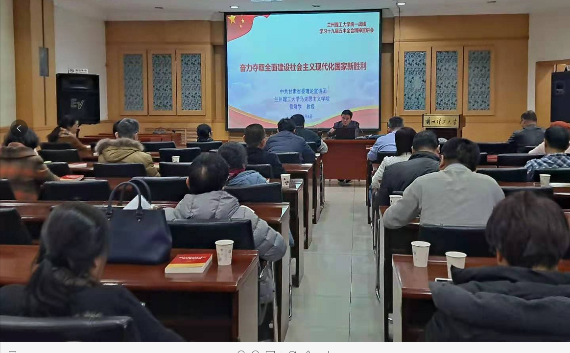 在黨的十九屆五中全會召開期間,學(xué)校統(tǒng)一戰(zhàn)線成員通過網(wǎng)絡(luò)、電視、手機(jī)客戶端和報紙等多種途徑關(guān)注黨的十九屆五中全會盛況。黨委統(tǒng)戰(zhàn)部為統(tǒng)一戰(zhàn)線成員配發(fā)了《<中共中央關(guān)于制定國民經(jīng)濟(jì)和社會發(fā)展第十四個五年規(guī)劃和二〇三五年遠(yuǎn)景目標(biāo)的建議>輔導(dǎo)讀本》和《黨的十九屆五中全會<建議>學(xué)習(xí)輔導(dǎo)百問》等學(xué)習(xí)資料。11月14日,學(xué)校在甘肅社會主義學(xué)院舉辦黨外知識分子培訓(xùn)班,40多名黨外知識分子參加培訓(xùn)。陳鈺業(yè)教授以《開啟全面建設(shè)社會主義現(xiàn)代化國家的新征程——中共十九屆五中全會精神解讀》為題,介紹了我國發(fā)展環(huán)境面臨的深刻復(fù)雜變化、“十四五”時期的指導(dǎo)思想和必須遵循的原則,解讀了“十四五”時期經(jīng)濟(jì)社會發(fā)展主要目標(biāo)和2035年遠(yuǎn)景目標(biāo),深刻闡明了實現(xiàn)這些目標(biāo)的工作要求和根本保證。12月8日,學(xué)校組織統(tǒng)一戰(zhàn)線成員進(jìn)行黨的十九屆五中全會精神理論宣講會,邀請省委理論宣講團(tuán)成員、學(xué)校黨的十九屆五中全會精神宣講團(tuán)成員、馬克思主義學(xué)院景君學(xué)教授做題為《奮力奪取全面建設(shè)社會主義現(xiàn)代化國家新勝利》的輔導(dǎo)報告,報告回顧了黨的十九屆五中全會召開的背景和“十三五”時期的發(fā)展成就,解讀了黨的十九屆五中全會的指導(dǎo)方針、主要目標(biāo)、遠(yuǎn)景目標(biāo)、應(yīng)遵循的原則、主要內(nèi)容、特色亮點和最新變化等,幫助統(tǒng)一戰(zhàn)線成員進(jìn)一步理解黨的十九屆五中全會的精神實質(zhì)和邏輯主線,40多名統(tǒng)一戰(zhàn)線成員參加宣講會。各民主黨派、統(tǒng)戰(zhàn)團(tuán)體也分別組織成員進(jìn)行學(xué)習(xí)交流研討,談學(xué)習(xí)體會、談思想認(rèn)識。