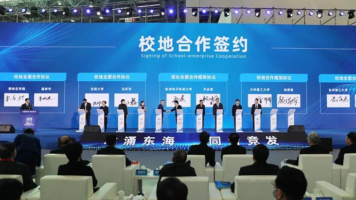 開幕式上,臺州市發布“科創中國”試點城市創建暨全球頂尖人才招賢令,臺州市人才創新創業服務綜合體揭牌成立,“臺州人才在線”云平臺啟用,滬臺、甬臺人才服務“一卡通”啟用……,全面展示臺州良好的創業創新環境。李躍旗在致辭時說:“臺州比以往任何時候都需要人才、渴求人才,人才也必將成為臺州現代化先行的最強動力和最亮標識。”他表示,高校與當地創新企業開展人才、科技合作、資源對接,將為臺州企業創新升級提供新路徑。在校地合作簽約儀式上,學校與臺州市仙居縣人民政府簽訂全面合作框架協議。