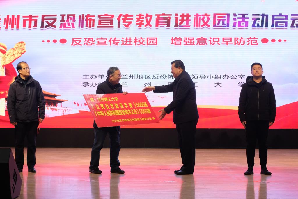 12月27日,蘭州地區反恐辦在學校蘭工坪校區體育館舉行蘭州市“反恐怖宣傳教育進校園”活動啟動儀式。蘭州市公安局副局長、蘭州地區反恐怖工作領導小組辦公室主任郭玉宏出席并講話。蘭州理工大學、市委宣傳部、市教育局、市衛生健康委員會、市應急管理局負責人出席。