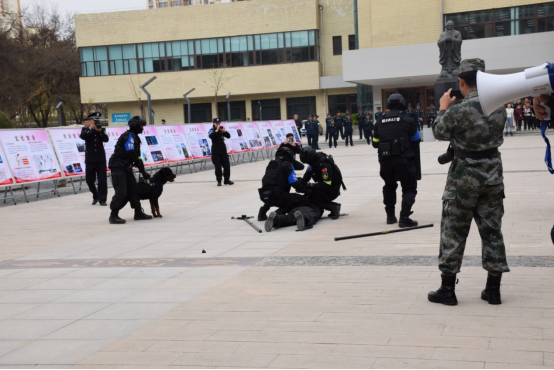 七里河公安分局反恐特警大隊開展了反恐防暴演練,展示了反恐裝備及警用裝備,向師生普及反恐防范知識,提升了師生知恐、識恐、防恐、反恐的能力和意識。