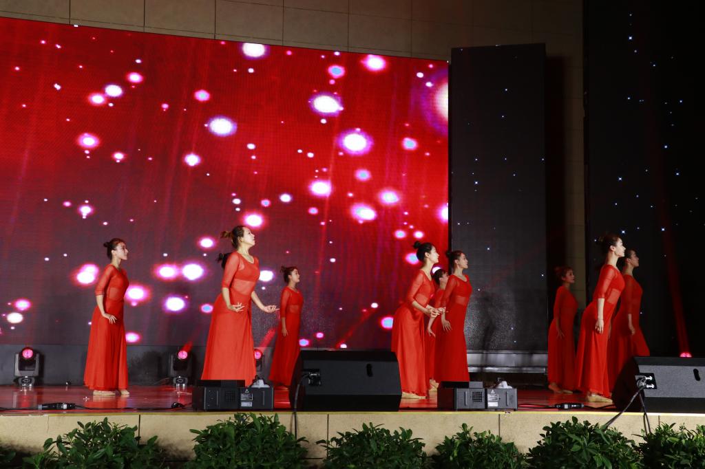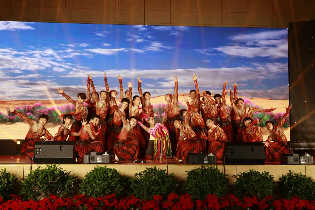 第二篇章《紅柳毓秀 青春向黨》展現(xiàn)了中國(guó)共產(chǎn)黨百年風(fēng)霜雪雨、大浪淘沙,淬煉鑄就大黨風(fēng)范的艱辛與榮光,抒發(fā)了紅柳學(xué)子聽(tīng)黨話、感黨恩、跟黨走的堅(jiān)定信念。鏗鏘有力的詩(shī)朗誦《紅船的方向》讓觀眾感動(dòng)于中國(guó)共產(chǎn)黨的巨輪百年來(lái)乘風(fēng)破浪、勇往直前的光輝歷程。管弦樂(lè)《燈火里的中國(guó)》攜起萬(wàn)里山河,譜寫(xiě)著新征程的壯美畫(huà)卷。由我校王娟老師演唱、教師舞蹈隊(duì)表演的歌伴舞《旗幟》用明亮高亢的音韻向偉大的黨、偉大的軍隊(duì)、偉大的祖國(guó)袒露拳拳赤子情懷,流暢優(yōu)美的旋律縈繞著高高飄揚(yáng)的光輝旗幟,久久回蕩在晚會(huì)現(xiàn)場(chǎng),深深銘刻在觀眾的心里。我校原創(chuàng)舞蹈《紅柳》以扎根鹽堿荒漠,與風(fēng)寒、孤獨(dú)不斷搏擊,在殘酷的環(huán)境中努力伸展、毅然綻放的紅柳為象征,詮釋了理工大人銳意進(jìn)取、頑強(qiáng)拼搏、執(zhí)著奉獻(xiàn)的紅柳精神。舞蹈氣勢(shì)磅礴,動(dòng)作整齊有力,觀眾深受震撼,將晚會(huì)推向高潮。