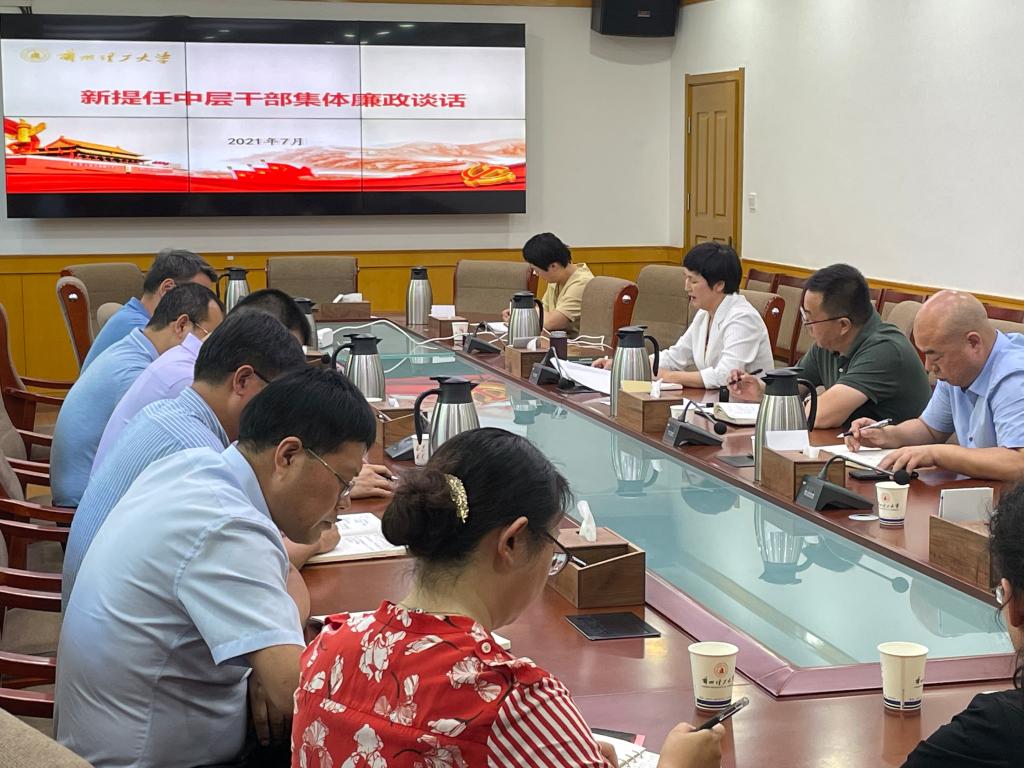 7月6日下午,學(xué)校紀(jì)委在行政樓二樓會議室對從2020年7月至2021年7月新提任的35名中層干部進(jìn)行集體廉政談話。黨委常委、紀(jì)委書記、監(jiān)察專員李香楓參加會議并講話,會議由紀(jì)委副書記馬霖主持。