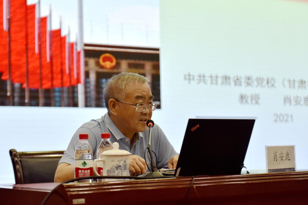 24日上午,中共甘肅省委黨校(甘肅行政學院)中共黨史教研部主任王銳作了題為《甘肅黨史及其在黨的歷史中的地位》的報告。報告從歷史是最好的教科書、中國共產黨在甘肅的輝煌歷程、甘肅黨史及其在黨的歷史中的地位三個方面作了深入細致的解讀。報告指出,在長期革命、建設和改革的偉大歷史征程中,甘肅人民在中國共產黨的領導下迎難而上、頑強拼搏,創造了不朽的革命業績。報告強調,面向未來,我們要深入學習習近平總書記關于黨史國史重要論述,認真學習黨史、新中國史、改革開放史、社會主義發展史,發揮好“四史”“必修課”的積極作用,善于總結歷史給予我們的智慧和經驗,不斷認識和把握人類社會發展規律、社會主義建設規律、共產黨執政和自身建設規律,在銘記歷史中汲取砥礪前進的強大精神力量,只爭朝夕、接力奮斗,為建設幸福美好新甘肅、不斷開創富民興隴新局面而努力奮斗。
