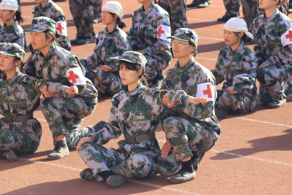 典禮上進(jìn)行了分列式、戰(zhàn)場(chǎng)救護(hù)、持槍方陣和軍體拳等軍訓(xùn)成果簡(jiǎn)要展示,分列式方陣以飽滿的精神、整齊的隊(duì)列,鏗鏘的步伐依次通過主席臺(tái),接受檢閱;戰(zhàn)場(chǎng)救護(hù)演練主要從止血、包扎、固定、心肺復(fù)蘇等四個(gè)內(nèi)容進(jìn)行;持槍方陣和軍體拳主要應(yīng)對(duì)瞬息萬變的戰(zhàn)場(chǎng)情況進(jìn)行打擊演練。通過軍訓(xùn)成果展示,充分體現(xiàn)了廣大教官以身作則,精心組織,科學(xué)施訓(xùn);學(xué)生工作干部立足崗位,盡職盡責(zé),全力保障;參訓(xùn)學(xué)生守紀(jì)律,講規(guī)矩,聽指揮,做表率,不怕吃苦,勤學(xué)苦練,形成了團(tuán)結(jié)向上、勇于進(jìn)取、創(chuàng)先爭(zhēng)優(yōu)的良好氛圍。為表彰先進(jìn),鞏固軍訓(xùn)成果,與會(huì)領(lǐng)導(dǎo)為獲獎(jiǎng)集體和個(gè)人頒獎(jiǎng)。
