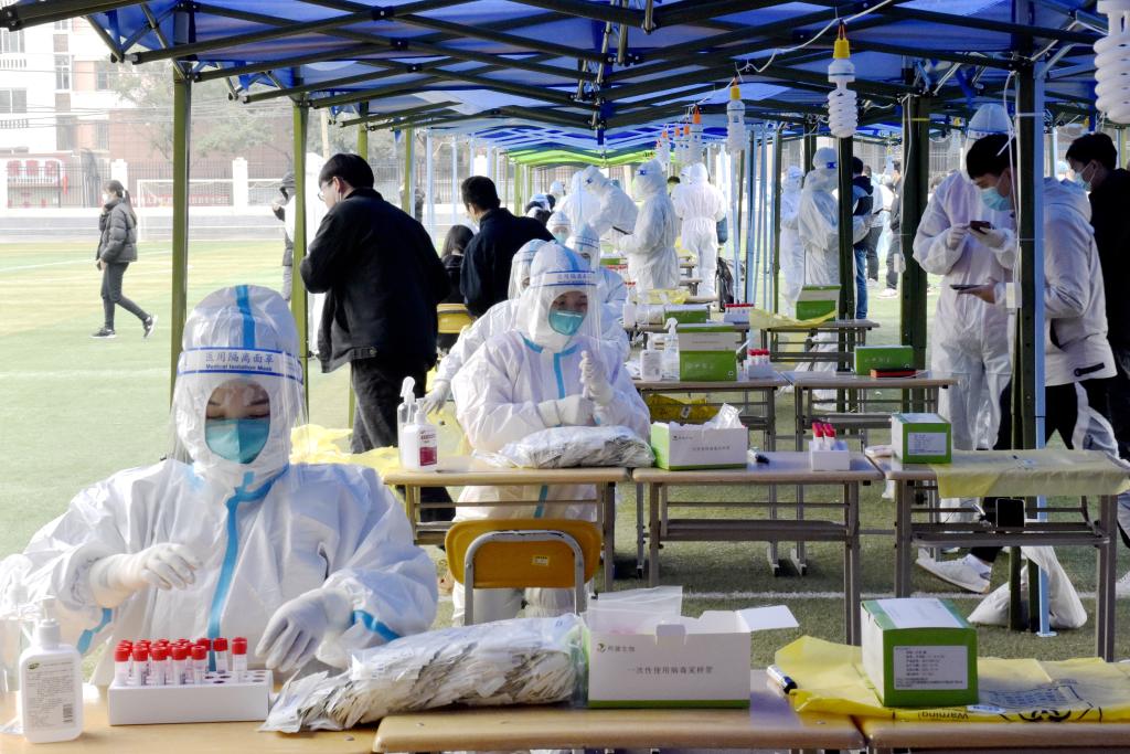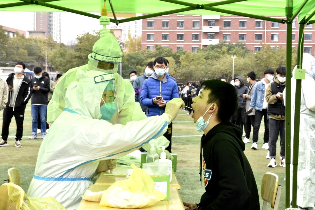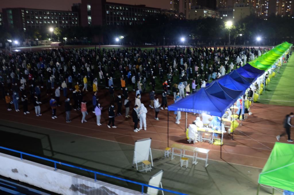 全體師生自覺佩戴口罩,遵守秩序,在工作人員的耐心引導及幫助下,嚴格落實“一米線”距離,有序等待檢測。醫務人員嚴格按照檢測規范流程進行掃碼登記、核酸采樣、環境消殺等工作。