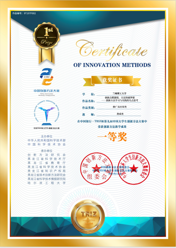 2021年中國創新方法大賽,由中華人民共和國科技技術部、中國科學技術協會天津市人民政府主辦,由中國科協企業創新服務中心、中國21世紀議程管理中心、創新方法研究會、天津科協、天津創新方法研究會聯合承辦;大賽設立企業創新方法專項賽、大學生TRIZ專項賽(中國TRIZ杯大學生創新方法大賽)和工業工程創新方法專項賽3個專項賽事。教師組為推廣及應用類,參賽對象為在全日制普通高校講授創新方法課程(涵蓋TRIZ、六西格瑪、精益生產等各類創新方法)以及應用創新方法進行科學研究、產品研發、技術推廣等相關活動的教師。中國TRIZ杯大學生創新方法大賽由學生賽道和教師推廣及應用賽道兩個賽道。該賽事中的專項賽事第九屆中國銀行“TRIZ”杯大學生創新方法大賽于2021年11月應疫情原因通過線上線下相結合的方式完成全部賽程。專項比賽經過高校賽、省區賽和全國賽,全國26個省、市、自治區參賽,共有165所高校參與,經網上評選后1184個項目進入國賽。11月6日,中國銀行·TRIZ杯第九屆中國大學生創新方法大賽決賽線上評審工作已經完成。大賽共評選出教師組一等獎3項,二等獎6項,三等獎13項。我校能動學院龔成勇老師在教師組以《創新點燃激情,方法鑄就夢想——創新方法學習與實踐的幾點思考》為題,講述創新方法在專創融合課程開發建設、實施和教學方法探索,介紹水電站課程為例講述專創融合課程教學方法,獲得競賽評委專家的一致認可,并在競賽后進行了創新方法教學教改經驗交流。