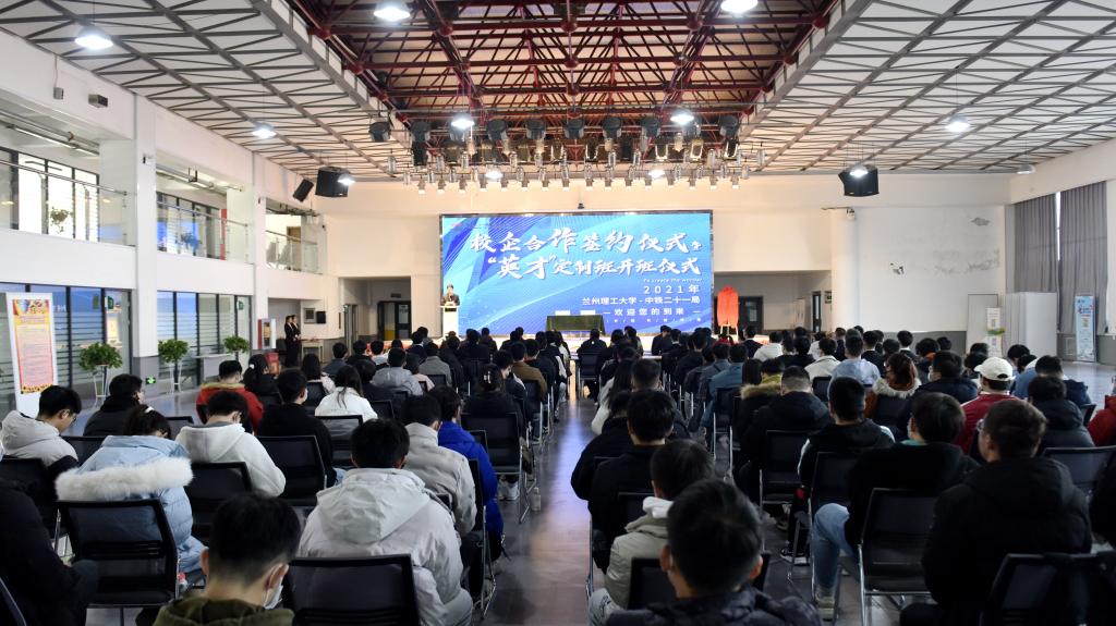 12月29日下午,蘭州理工大學、中鐵二十一局集團有限公司校企合作簽約儀式暨中鐵二十一局“英才定制班”開班儀式在我校蘭工坪校區大學生活動中心四樓成功舉辦。中鐵二十一局集團有限公司黨委副書記、工會主席田愛平、集團人力資源部部長鄭志民等領導參加會議。蘭州理工大學黨委常委、副校長王全進出席會議并致辭。黨委宣傳部、教務處、學生處、校團委、學生就業指導服務中心及相關學院負責人、“英才定制班”全體學生參加了開班典禮。