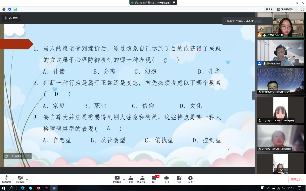疫情發(fā)生后,心理健康中心迅速行動,為全體心理委員開展了《疫情下大學(xué)生常見心理問題及其識別》的專題培訓(xùn)、為2021級全體心理委員和宿舍心理聯(lián)絡(luò)員代表開展線上心理MOOC培訓(xùn),切實增強了心理委員的工作技能和疫情條件下服務(wù)同學(xué)的能力。
