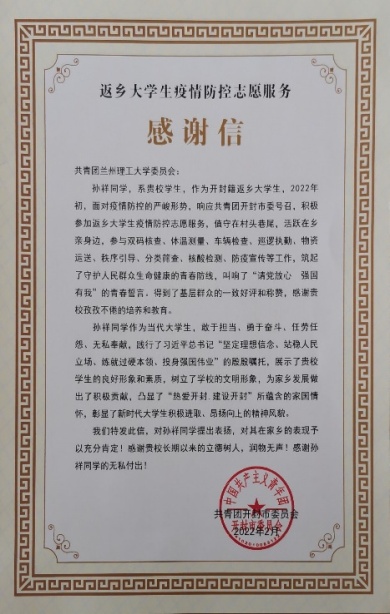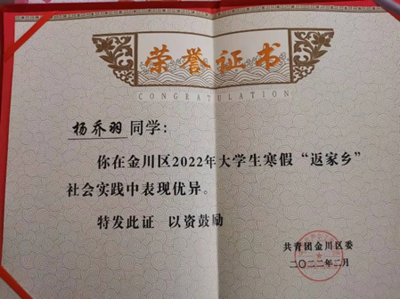 “返家鄉”公益,助力家鄉發展。有300余名大學生志愿者,主動參與生源地社區服務、疫情防控、文明城市創建、“返家鄉”實踐崗位鍛煉等工作,在參與基層工作中,感受家鄉變化,主動承擔責任,助力家鄉發展。有60余支實踐團隊通過“云組隊”“云調研”“云訪談”等形式,深入開展國情社情民情調研活動,積極參加在家鄉舉辦的春節文藝聯歡、陪伴空巢老人、禁毒防艾宣傳、破除宗教迷信、預防電信詐騙等活動,為經濟社會發展、弘揚傳統文化貢獻智慧和力量。