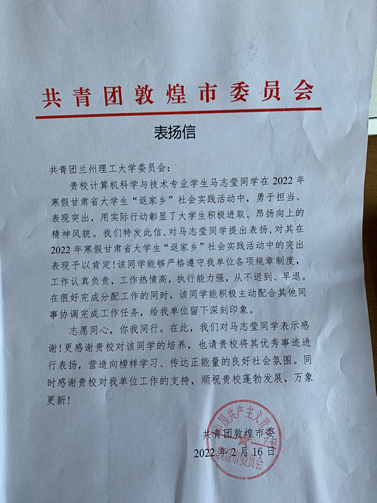 廣泛宣傳,營造濃厚實踐育人氛圍。重視“返家鄉”社會實踐活動宣傳工作,實踐活動分別在校內外各級新聞媒體報道140余篇,其中省級以上新聞媒體報道60余篇,“云支教 迎冬奧”專項實踐活動先后被“中青校園”、“中新網”“新甘肅”等省級以上新聞媒體報道17次。另有70余名大學生表現突出,受到地方政府致信感謝或通報表彰。