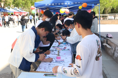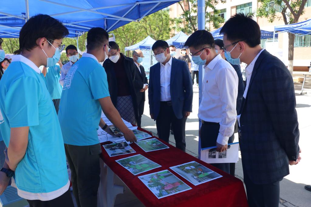 儀式前后,領導和嘉賓們參觀了第一屆志愿服務大賽項目“雙選會”、2021-2022社會實踐成果展、學生社團風采展、525心理健康節等活動。領導與同學們熱情交流,仔細聆聽志愿服務項目介紹和我校社會實踐近兩年來取得的豐碩成果,認真觀看學生社團書畫展、手工作品展、漢服展,詳細詢問學生社團發展和活動開展情況,積極體驗魔方變幻、剪紙和心理健康活動,親身感受我校豐富多彩的校園文化。之后,領導們前往教學樓,觀摩示范性主題團日活動。五個基層團支部結合專業特色,分別開展了習近平總書記視察中國人民大學講話精神學習感悟分享交流會、新入團團員入團儀式、用外語講好黨的故事、紅色主題影片配音、青春寄語二十大等活動,內容豐富多彩,形式新穎有趣,團員青年參與熱情高,充分呈現了我校團支部“活力提升”的典型特色。領導與團員青年一起學習、一起參與,對我校基層團支部組織“活力提升”的整體創建成效作出肯定。