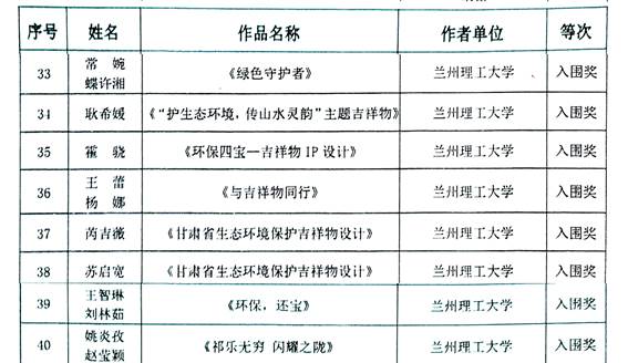 據悉,本次大賽共計收到552件作品,經過“甘肅省生態環境保護吉祥物”作品大賽評審會評審,最終有48件作品獲獎,其中我校有8件學生作品獲“優秀設計方案入圍獎”,趙霞老師榮獲“優秀組織個人獎”,我校榮獲“優秀組織單位獎”。