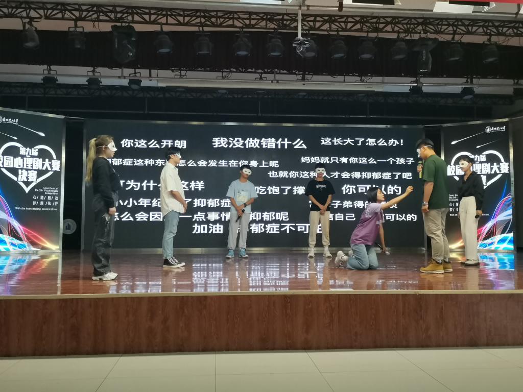 經過初賽、復賽的選拔,共六部心理劇作品脫穎而出,成功晉級決賽。六部作品主題緊扣大學校園生活中常見的心理困惑,通過校園心理情景劇這種“自己演,演自己”的形式,運用角色扮演、未來投射、替身、獨白等心理劇技術,將不同人物角色內在的心理歷程形象地、藝術化地展現在舞臺上,生動刻畫了大學生成長路上的情感沖突、內心彷徨及成長感悟。土木學院的《牢籠》講述了抑郁癥患者從不被人理解到被接納、被療愈的過程,帶領觀眾們走進抑郁癥患者的內心世界,加深了觀眾對抑郁癥的正視和理解。電信學院的《不再討好》講述了主人公陶好在心理咨詢師的幫助下關注自己內心需要、學會拒絕別人的變化過程,討好心理與真實心理之間的痛苦掙扎生動呈現了討好型人格的特點。火橐木劇社《逐夢日記》講述了一只向往大海的小雞,敢于撕掉“雞”的標簽,勇敢追夢的故事,劇情深刻有內涵,讓觀眾沉浸其中。材料學院《向陽而生》構思了一個對生活處處抱怨的同學在夢幻商店的啟發下發現生活中美好的故事。外語學院《懸崖》、經管學院《貸價—破繭成蝶》將戀愛PUA、校園貸等話題搬上舞臺。參賽隊伍的表演或幽默風趣,或令人動容,精彩絕倫的表演獲得了在場觀眾強烈的心理共鳴。表演結束后,王春暉老師對每個劇目做出了精彩點評。最終,土木學院《牢籠》榮獲比賽一等獎。