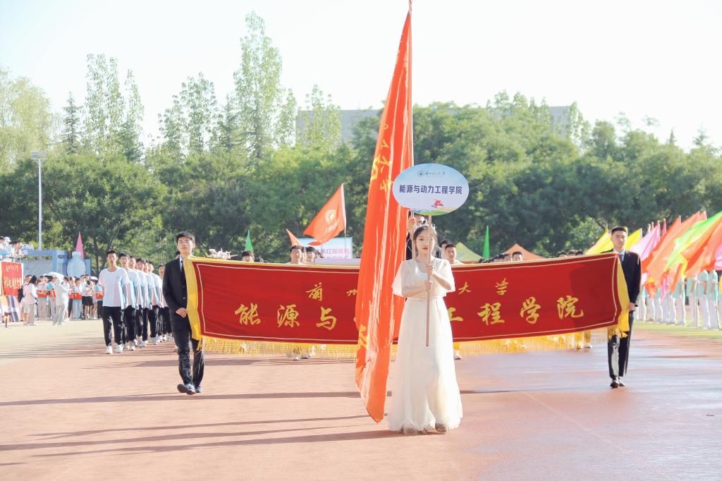 開幕式上,國旗護衛隊、儀仗隊、裁判員隊伍、各學院學生方陣依次入場。各隊列士氣高昂,步伐整齊,口號嘹亮,意氣風發。“喜迎二十大奮進新征程”“請黨放心 強國有我”“求實創新 厚德博學”等16個用魔方、彩扇、彩環、花束、標語牌等精心編排的隊形,別出心裁的創意表演,讓現場觀眾吶喊連連,掌聲雷動。精彩紛呈的入場式,充分展示了新時代青年的熱情與活力。