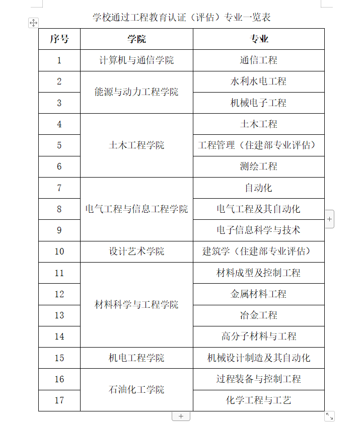 學(xué)校從2014年開始,截止目前共計(jì)機(jī)械設(shè)計(jì)制造及其自動(dòng)化等15個(gè)專業(yè)通過工程教育認(rèn)證,2個(gè)專業(yè)通過住建部專業(yè)評(píng)估。學(xué)校36個(gè)專業(yè)屬于中國工程教育專業(yè)認(rèn)證協(xié)會(huì)的認(rèn)證專業(yè)領(lǐng)域,現(xiàn)42%的專業(yè)已經(jīng)進(jìn)入全球工程教育“第一方陣”,通過專業(yè)數(shù)量位列全國高校前15位。