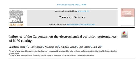 近期,省部共建有色金屬先進加工與再利用國家重點實驗室耐磨蝕材料表面工程技術團隊,材料科學與工程學院楊效田老師及其學生曾榮等在國際腐蝕科學領域TOP期刊Corrosion Science(影響因?7.205)上發表了以《Influence of the Cu content on the electrochemical corrosion performances of Ni60 coating》為題的最新科研成果。該成果以蘭州理工大學材料科學與工程學院、省部共建有色金屬先進加工與再利用國家重點實驗室為第一通訊單位,通信作者為楊效田。