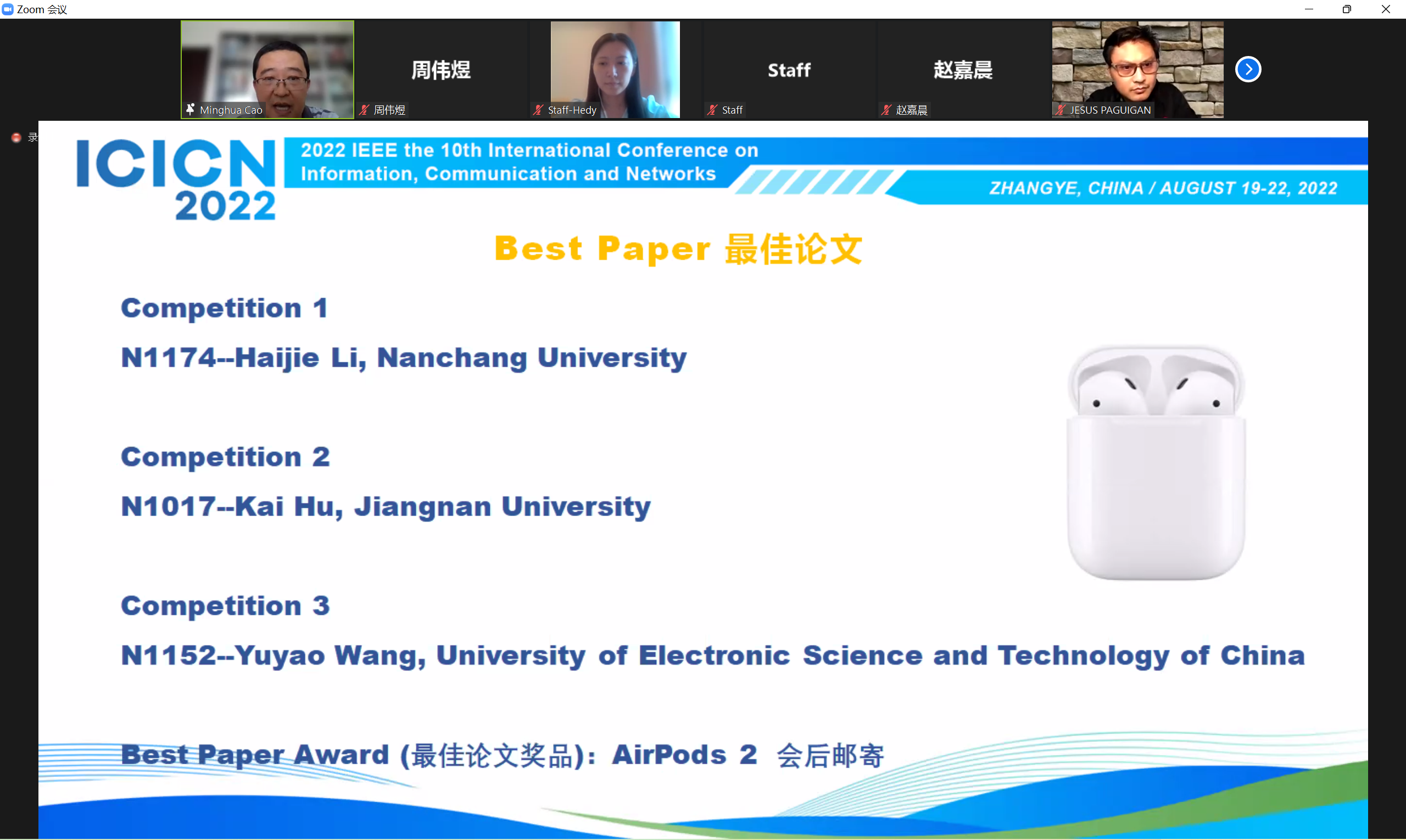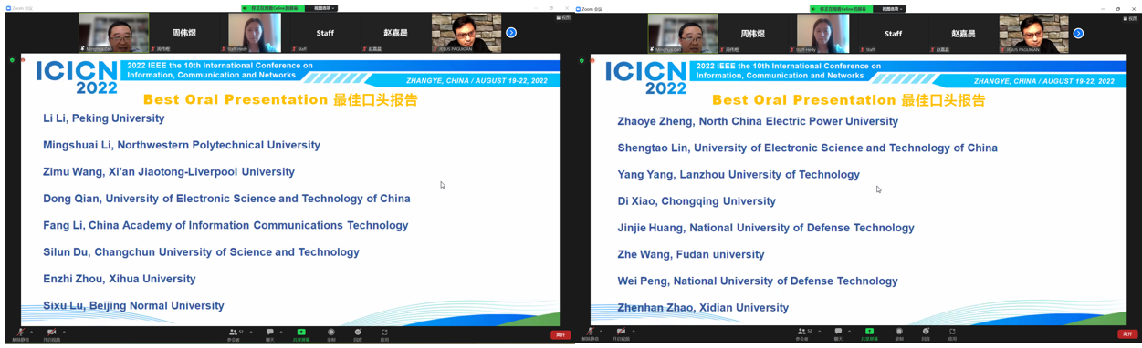 IEEE第十屆國際信息,通信和網絡會議(2022 IEEE 10thInternational Conference on Information, Communication and Networks, ICICN 2022)于8月19日至22日在蘭州舉行。本次大會由蘭州理工大學、IEEE和IEEE傳感與系統中國專業委員會主辦,西北工業大學、北京郵電大學、蘭州城市學院聯合主辦,西安理工大學、長春理工大學、西安工業大學、澳門科技大學、陜西師范大學、西安交通大學、亞太信號與信息處理協會協辦。會議采用線上線下互動交流形式進行,主會場設在蘭州理工大學。