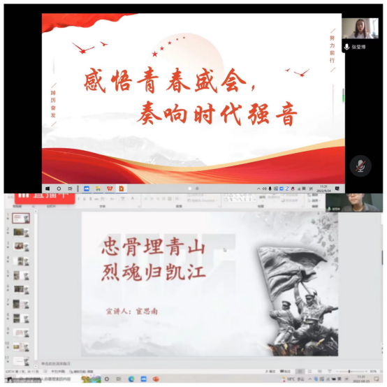 宿舍追劇時間播放了我校近年來錄制的深受學生喜愛的文藝晚會、文藝作品;在每日晨練時刻和每日放松時刻,我校文體類社團發揮作用,開展了有益身心的太極拳普及教學、手工制作互動、演講基礎知識與技巧的展示以及豐富多彩的音樂互動放松活動;“新生第一課”板塊帶領2022級新生知校史明校情,引導新生盡快適應大學生活,科學規劃大學生涯,以飽滿的熱情和信心擁抱大學;每日長知識時刻板塊邀請了校內專業教師開展英語學習方法實用講座;同時,校團委“青馬宣講團”的同學們積極發揮學生朋輩宣講潤物無聲的作用,在云端講述微團課,以更接地氣、更有溫度的講述增強同學們對習近平新時代中國特色社會主義思想的情感共鳴和內心認同。