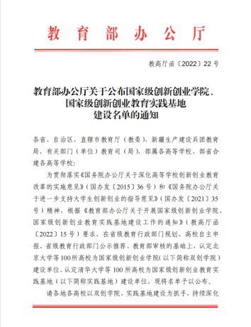 2022年入選全國首批國家級創(chuàng)新創(chuàng)業(yè)學(xué)院建設(shè)單位