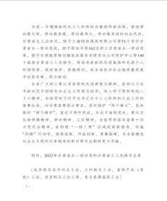 為進一步大力弘揚勞模精神、勞動精神、工匠精神,營造勞動最光榮、勞動最崇高、勞動最偉大、勞動最美麗的社會風尚,進一步激勵廣大職工愛崗敬業(yè)、拼搏奉獻,省總工會決定表彰授予一批“甘肅省五一勞動獎狀、獎章”“甘肅省工人先鋒號”的單位和個人,全省共評出140個集體“甘肅省工人先鋒號”。學校工會接到通知后,積極動員組織申報,按通知要求程序進行了推薦上報。
