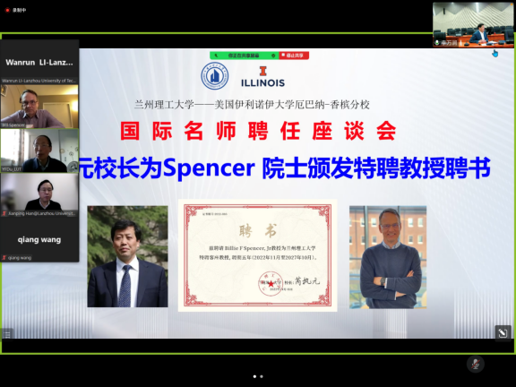 芮執元校長線上會見Spencer院士并出席國際名師聘任座談會