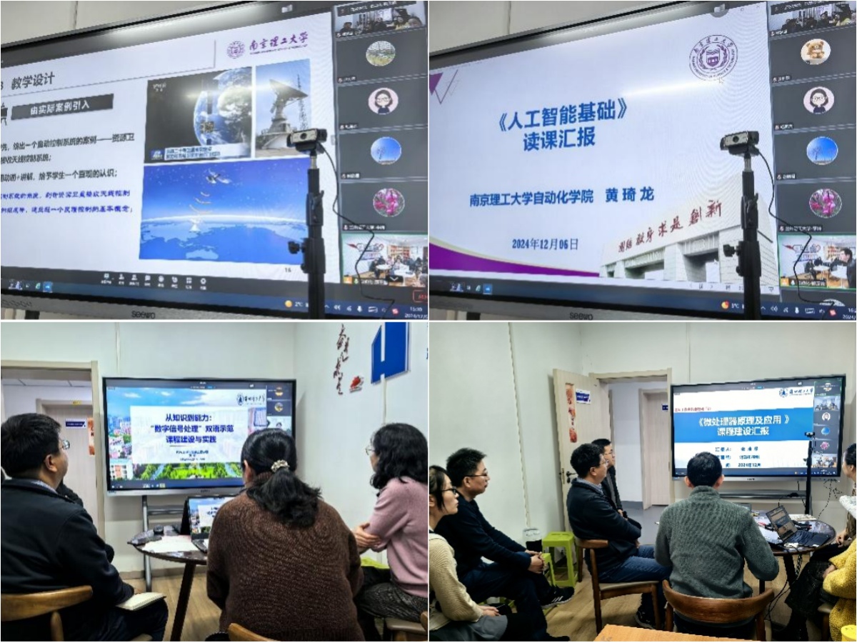 南京理工大學樊衛華針對《嵌入式控制系統及應用》課程“說課”,以衛星接收天線控制實例開篇,展示了課程教學環節設計、內容組織及教學方法優化;黃琦龍針對《人工智能基礎》課程,圍繞內容編排、教學設計創新、教材選用的考量及具有挑戰性的考評方式設定,進行了“讀課”分享。學校黃玲老師展示了雙語示范課程《數字信號處理》的“說課”,分享了雙語教學的特色做法、講義編纂及思政案例心得;張浩琛老師針對《微處理器原理及應用》,從教學背景與需求分析、教學內容設計等方面,進行“說課”展示。