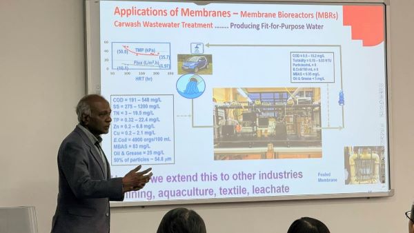 座談會結束后,Jega教授在彭家坪校區圖書館報告廳作題為《Integrated Water Management through Advanced and Appropriate Technologies: Sharing Our Experiences》的學術報告。報告介紹了研究組在膜生物反應器等在水處理中的最新研究進展,在洗車、制糖業、尾礦等行業廢水、海水淡化、國內外膜生物反應器的應用實例,膜反應過程建模及應用中存在的主要問題及解決方法研究。報告結束后,Jega教授與在場師生進行了交流并邀請師生赴RMIT大學訪學交流和深造學習。