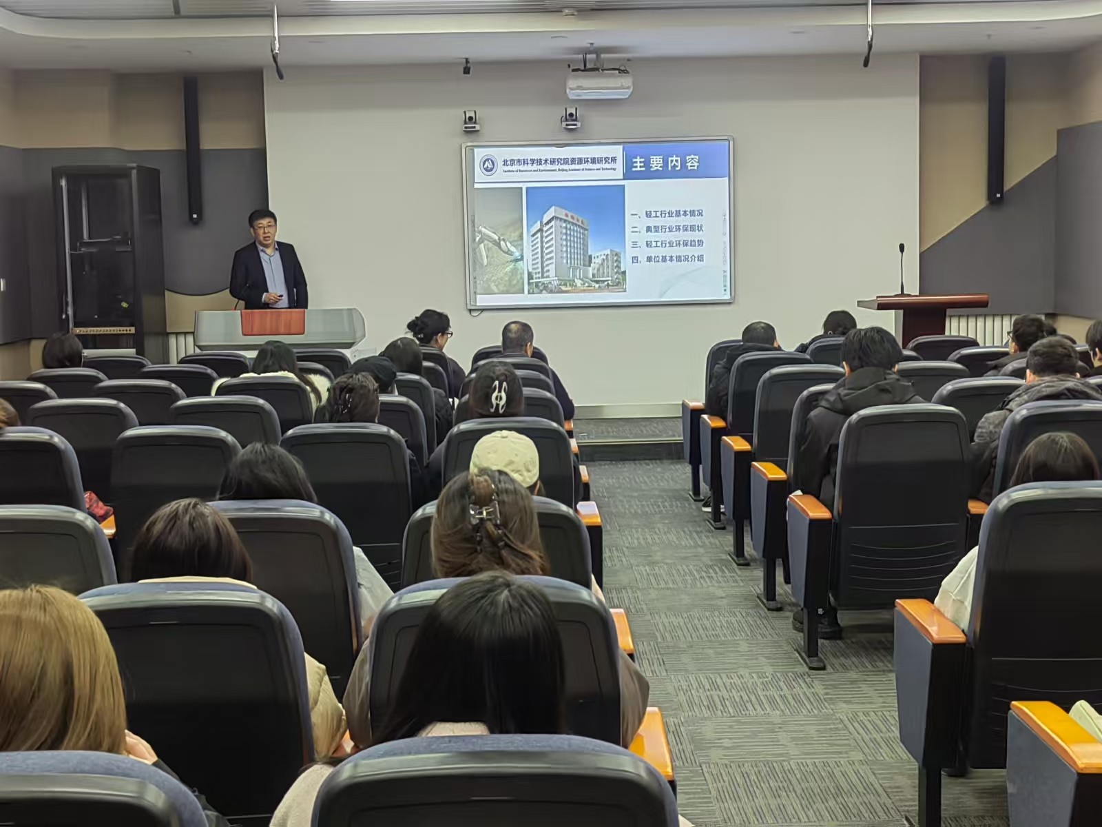 孫曉峰研究員聚焦輕工行業(yè)環(huán)境保護(hù),圍繞輕工行業(yè)基本情況、典型行業(yè)環(huán)保現(xiàn)狀、輕工行業(yè)環(huán)保趨勢(shì)等內(nèi)容,重點(diǎn)介紹了輕工行業(yè)中淀粉、玻璃、電池、釀酒、屠宰、制革、廢物回收利用(廢鉛蓄電池、廢塑料)等典型行業(yè)的產(chǎn)排污特征、污染防治技術(shù)和目前存在的主要問題。會(huì)后,孫曉峰研究員與師生進(jìn)行了互動(dòng)交流,并針對(duì)相關(guān)問題提出了自己的見解和建議。