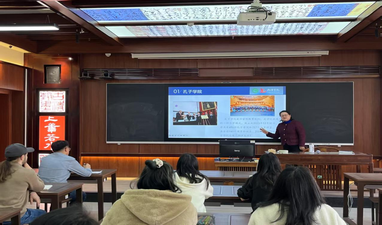 講座上,張國(guó)錦立足全球視野,從五個(gè)方面將孔子學(xué)院建立到國(guó)際中文教師出國(guó)培訓(xùn)做了詳細(xì)講解,并通過詳實(shí)的數(shù)據(jù)和典型案例,強(qiáng)調(diào)孔子學(xué)院在全球中文教育體系中的核心作用,介紹其在促進(jìn)中外人文交流、推動(dòng)文明互鑒方面取得的顯著成效。針對(duì)國(guó)際中文教育人才隊(duì)伍建設(shè),深入解讀了公派教師與國(guó)際中文志愿者的選拔機(jī)制、培養(yǎng)路徑及職業(yè)發(fā)展前景,并結(jié)合“國(guó)際中文教師資格證書”考試動(dòng)向,為在場(chǎng)師生提供了備考指導(dǎo)建議。