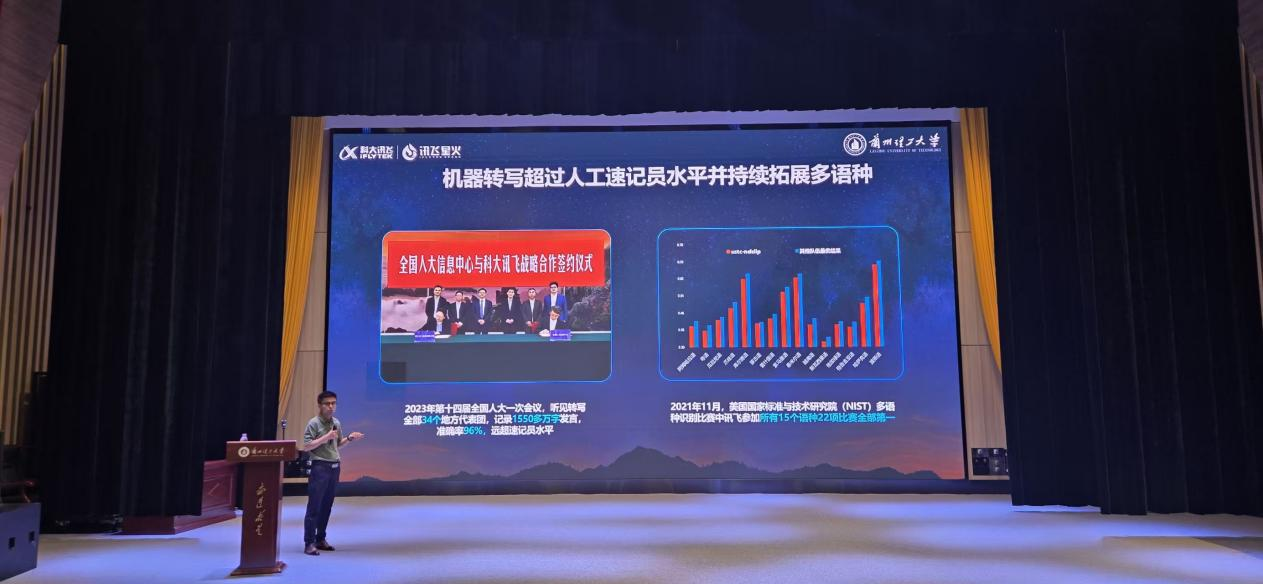 報(bào)告會(huì)上,陳磊老師以通俗易懂的方式深入介紹了人工智能大模型的最新進(jìn)展,詳細(xì)闡述了其在算法優(yōu)化、數(shù)據(jù)處理、應(yīng)用場(chǎng)景拓展等方面取得的突破性進(jìn)展。隨后,他聚焦于科大訊飛大學(xué)生創(chuàng)新創(chuàng)業(yè)相關(guān)賽事產(chǎn)業(yè)命題為同學(xué)們做了詳細(xì)解讀,陳磊老師結(jié)合科大訊飛在智能語(yǔ)音與人工智能技術(shù)方面的獨(dú)特優(yōu)勢(shì),從命題背景、技術(shù)要求、應(yīng)用場(chǎng)景等多個(gè)維度進(jìn)行剖析,讓同學(xué)們深入了解企業(yè)對(duì)創(chuàng)新人才的需求,以及如何將所學(xué)知識(shí)與企業(yè)實(shí)際需求相結(jié)合,創(chuàng)造出具有商業(yè)價(jià)值和社會(huì)價(jià)值的創(chuàng)新成果,并針對(duì)參賽團(tuán)隊(duì)常見(jiàn)的問(wèn)題提出切實(shí)有效的應(yīng)對(duì)策略?;?dòng)環(huán)節(jié)中,同學(xué)們踴躍提問(wèn),現(xiàn)場(chǎng)氣氛熱烈。