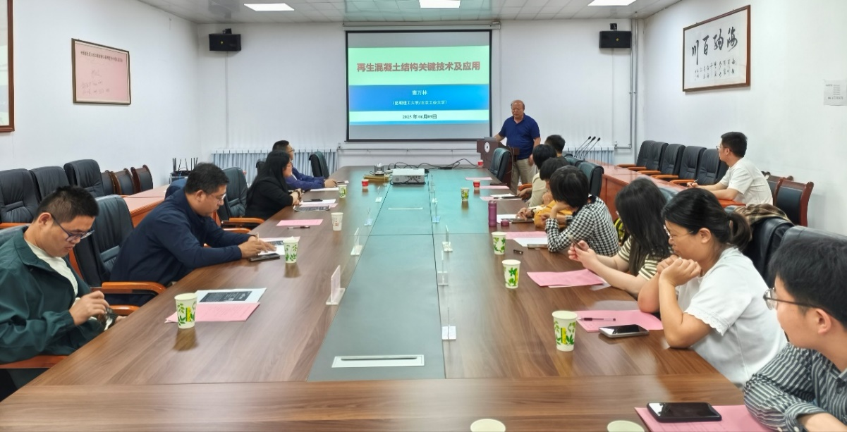 曹萬林教授以“再生混凝土結構關鍵技術及應用”為題,系統梳理了再生混凝土結構從材料性能提升、構件設計優化到整體結構抗震抗災等關鍵環節的技術體系,深入剖析了技術瓶頸與突破路徑,結合團隊標志性研究成果及典型工程應用案例,生動展示了再生混凝土技術在綠色建造、固廢資源化與建筑降碳方面的巨大潛力與實際效益。報告結束后,師生們就有關學術問題與曹萬林教授進行了探討。