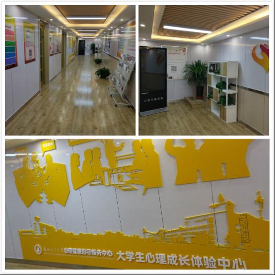 新建成的心理健康體驗中心位于大學生活動中心五樓,占地100平米,設有團體輔導室、個體咨詢室、沙盤放松室和心靈長廊等功能場地。各功能室相對獨立、符合心理咨詢標準,同時突出了心理自助性和體驗性。