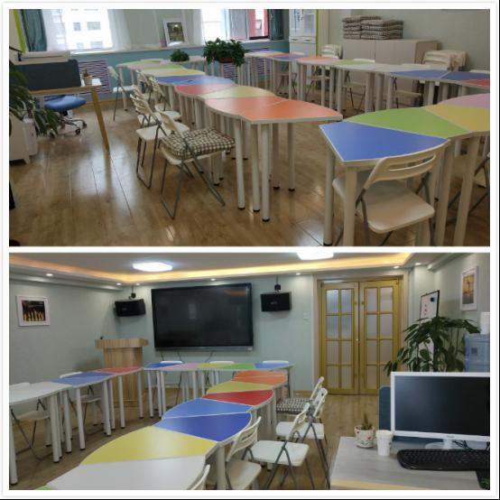 團體輔導室內配有團體輔導桌椅、團體輔導設備和交互智能平板等設備,兼具心理活動課教室和團體輔導的功能,可以同時滿足開展團體心理輔導活動和開展心理教學研討、講座、沙龍等的需求。