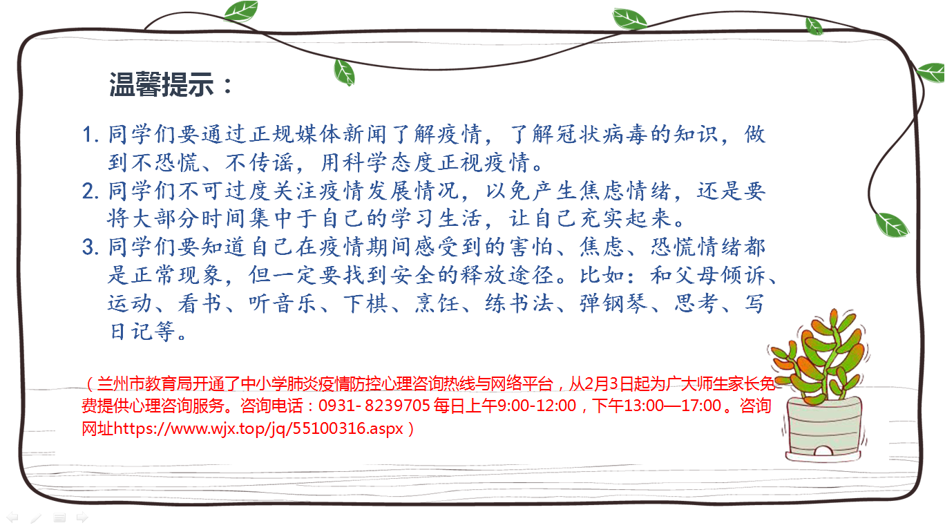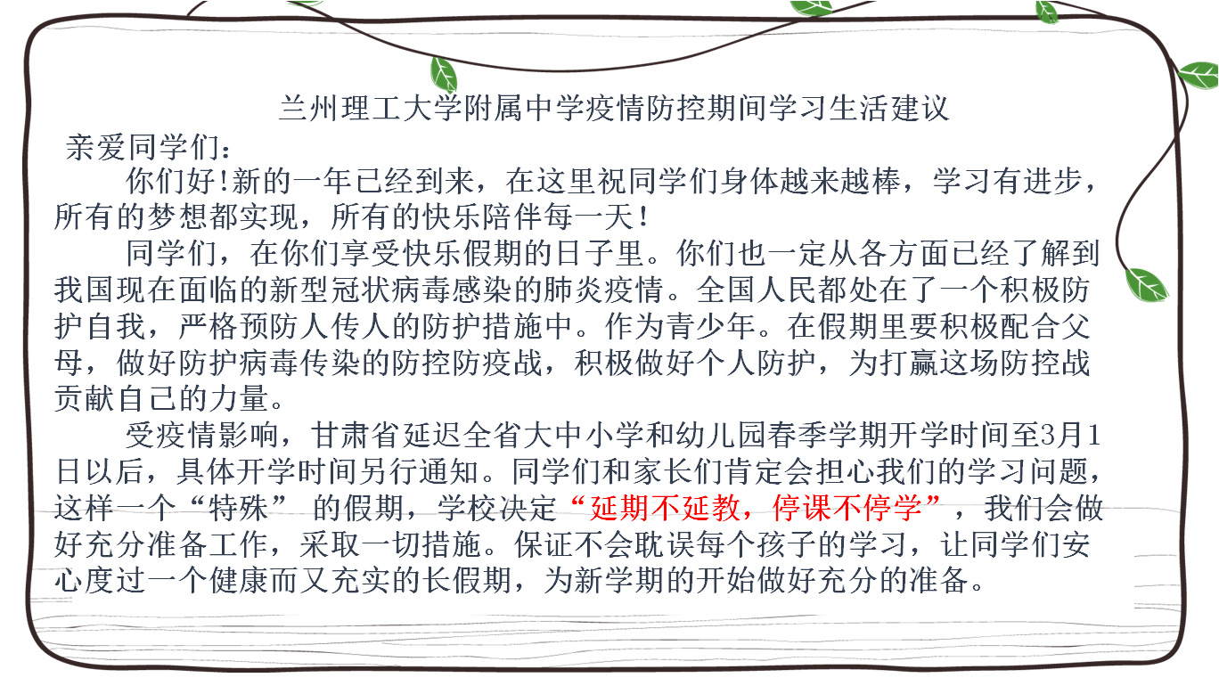 下一篇:蘭州理工大學附屬中學關于新型冠狀病毒感染的肺炎疫情防控有關工作安排及要求