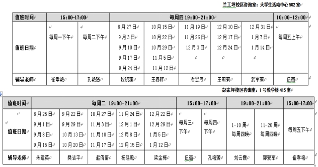 兩校區(qū)心理咨詢排班表:
