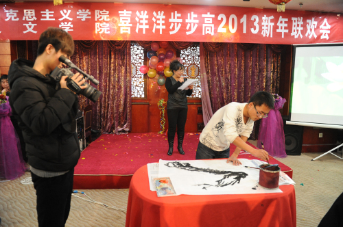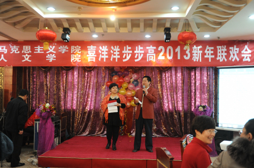黨委宣傳部齊偉建副部長與人文學(xué)院袁新利老師主持聯(lián)歡會