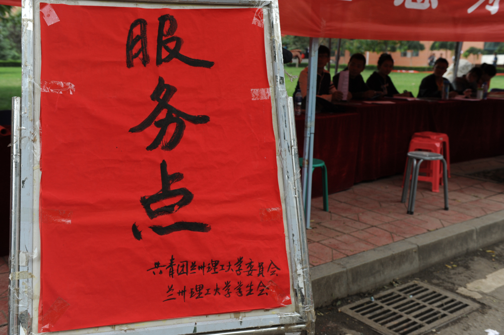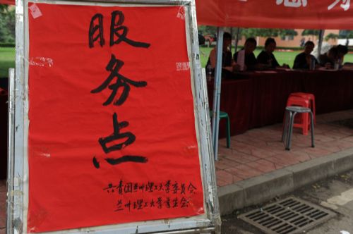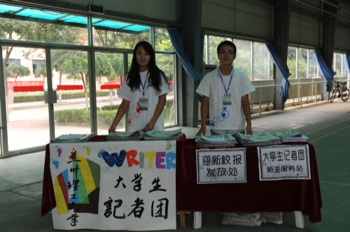 團委學生會的同學在這里設置了迎新服務點,他們主要的工作是每天向新生指路,幫他們拿行李等等,昨天他們還幫助一位新生找到了丟失的行李