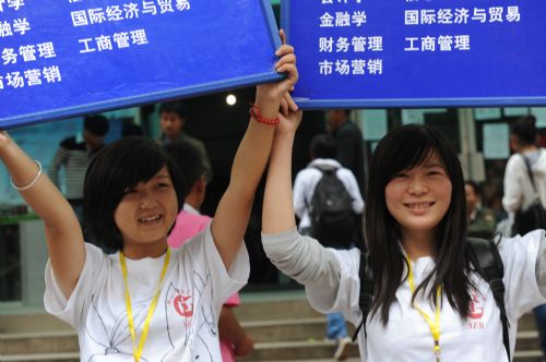 經管學院的兩位美女學姐是大二的學生,去年他們才剛剛入學,今年他們負責迎接新生,他們說這幾天迎新回想去年的自己,感觸頗深