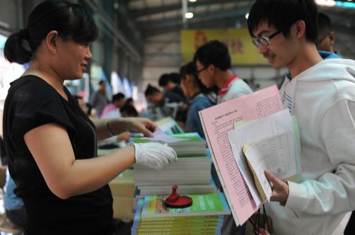 蘭州理工大學大學生記者團在為新生發放迎新校報