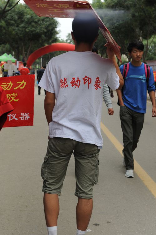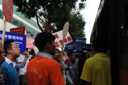 昨天在西校區看到了很多這樣舉著牌子的同學,他們的工作是迎接剛從火車站接到學校的新生和家長