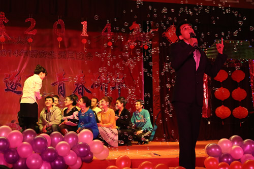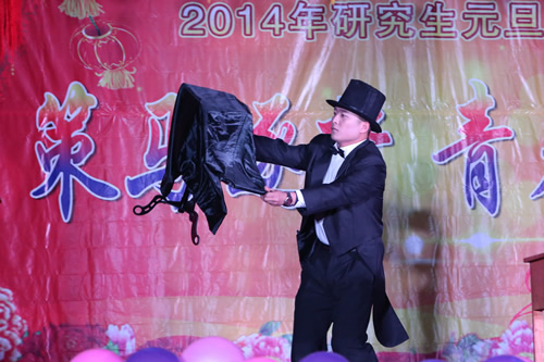 12月27日晚,我校2014年研究生元旦晚會(huì)在大學(xué)生活動(dòng)中心舉行。學(xué)校副校長(zhǎng)俞樹榮、宣傳部部長(zhǎng)段開軍、研究生院院長(zhǎng)樊丁、黨委研究生工作部部長(zhǎng)周琦、各學(xué)院領(lǐng)導(dǎo)與1500余名師生歡聚一堂,共享這場(chǎng)視聽盛宴。