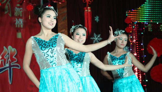 晚會(huì)不僅有師生同堂的歡樂,更有多民族文化融合的精彩:經(jīng)管學(xué)院王子萱等同學(xué)帶來的現(xiàn)代舞《說出你的愿望》、設(shè)計(jì)學(xué)院曹馨等同學(xué)表演的孔雀舞《彩云之南》、新疆舞《節(jié)日歡歌》、由機(jī)電學(xué)院和體育部研究生帶來的健美操《悸動(dòng)的旋律》及留學(xué)生帶來的精彩舞蹈都給大家留下了深刻的印象;理學(xué)院和計(jì)通學(xué)院帶來的歌伴舞《愛的華爾茲》,舞姿曼妙,意境唯美;程發(fā)良、李駿等四位同學(xué)帶來的流行串燒,引起了全場(chǎng)大合唱的效果。期間穿插“馬上有禮”抽獎(jiǎng)節(jié)目,把幸運(yùn)和祝福送給在場(chǎng)的師生。