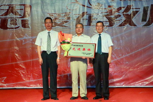 李貴富書記和王曉明校長頒發甘肅省“園丁獎”教育系統先進集體
