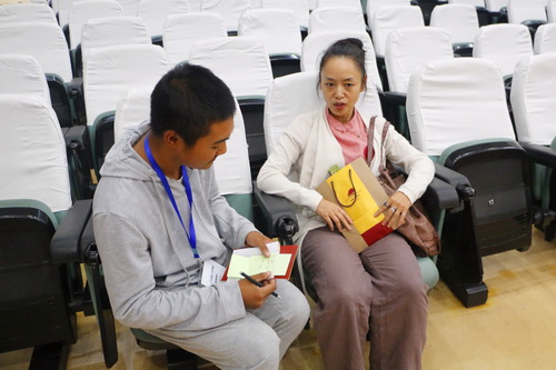 楊曉靄院長將題有《紅柳大講堂》的折扇送與李玫教授