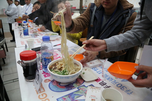 2014-12-0311月29日,后勤集團飲食服務公司舉辦了牛肉面技能交流賽。來自兩校區各餐廳的8支代表隊,16名參賽選手上演一場精彩絕倫的拉面大比武。