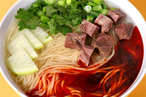蘭州牛肉面講究“一清”、“二白”、“三紅”、“四綠”、“五黃”,是老少皆宜、色香味形具佳的大眾特色的食品。“一清”:湯要清爽;“二白”:白蘿卜有白人參之謂也;“三紅”:辣椒油紅,開胃健脾;“四綠”:蒜苗香菜綠茵茵令人垂涎欲滴;“五黃”:面條又黃又亮,又光又筋道。