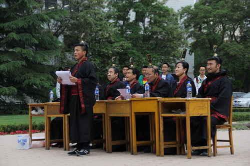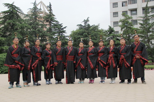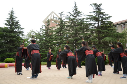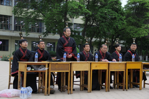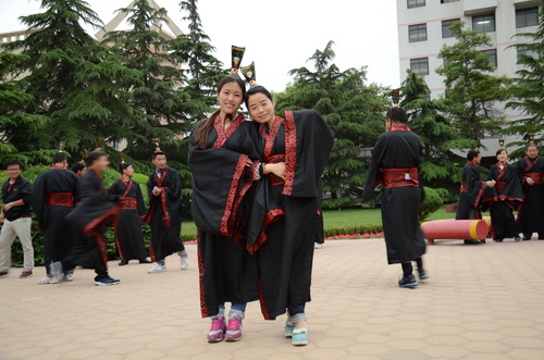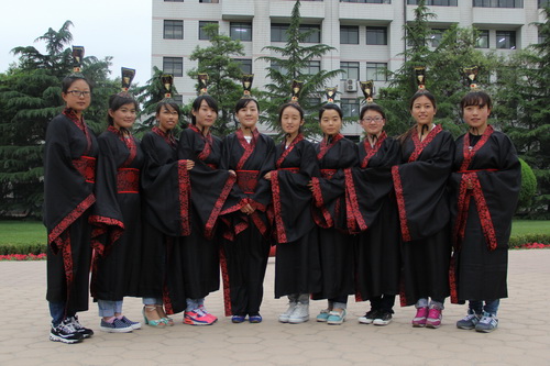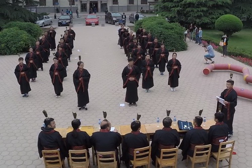 5月20日上午,材料學院“漢禮儀畢業儀式——感恩母校 感恩尊師 感恩同窗”活動在校本部圖書館廣場舉行。老師和金材3班2015屆畢業生同學穿戴莊重的漢禮服,以標準的漢禮叩拜母校、叩拜恩師、同學互拜。